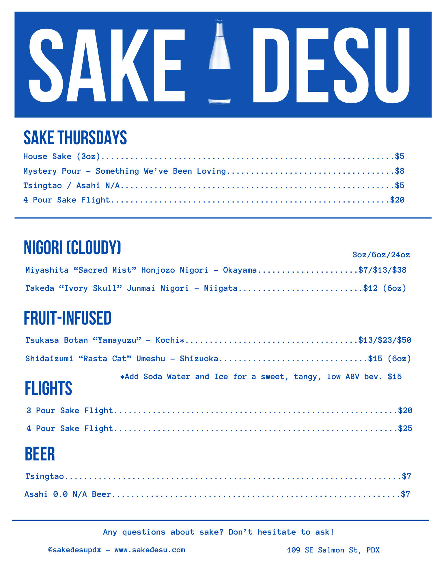 Enter the door marked 109, walk up the stairs, and turn right. You’ll find Sake Desu and our neighbors Buona Notte Apartamento and Statera Cellars.